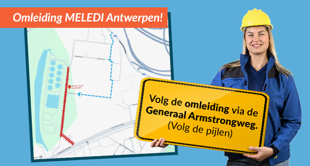 Let op! Van 5 augustus tot met 19 december 2025 zijn er wegwerkzaamheden aan het Kielsbroek in Antwerpen. Maar geen zorgen, MELEDI blijft gewoon bereikbaar via de Generaal Armstrongweg. Meer info